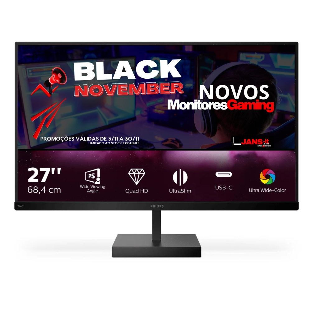 Os monitores Philips Monitor 276C8/00, são vendidos pela JANS-it com 3 Anos de garantia. A Garantia de 3 Anos é válida para particulares e empresas.